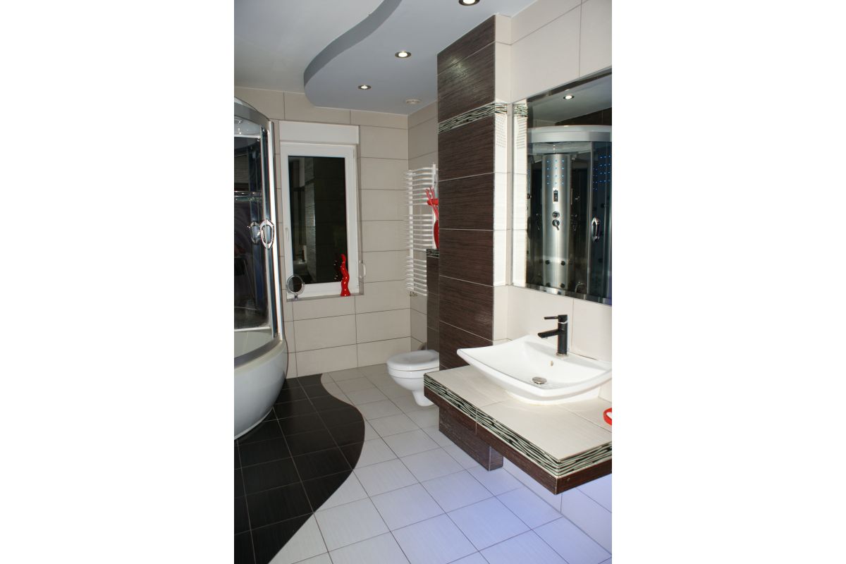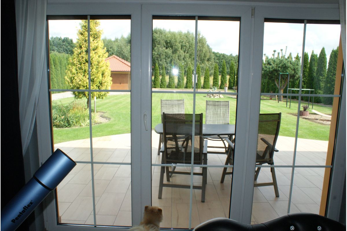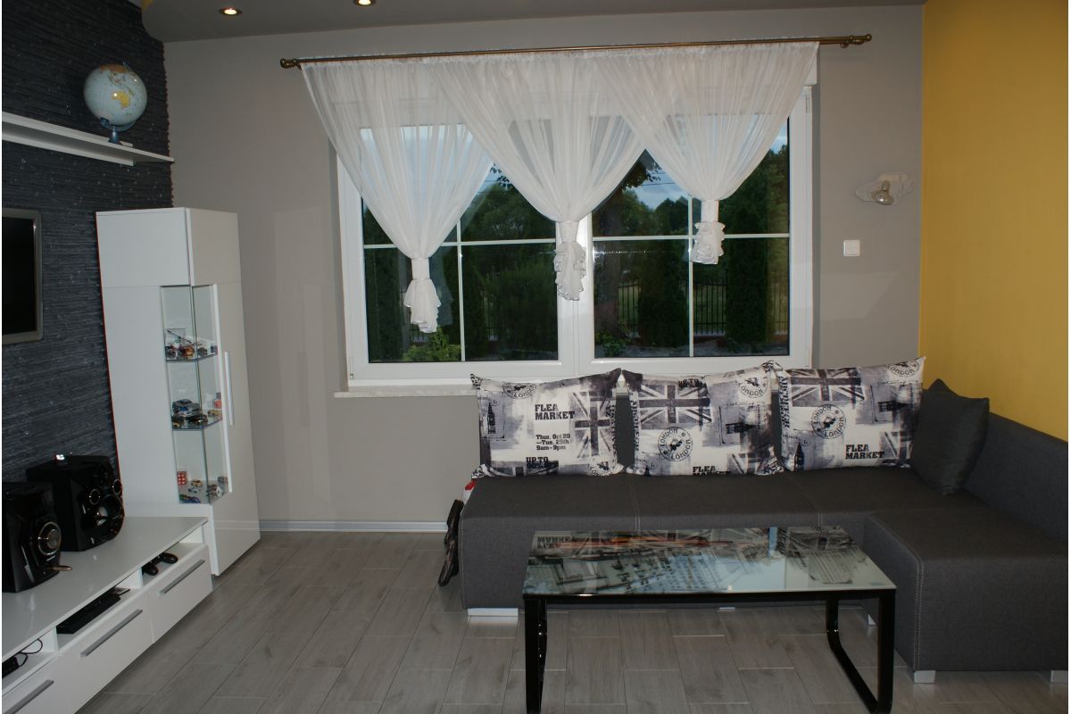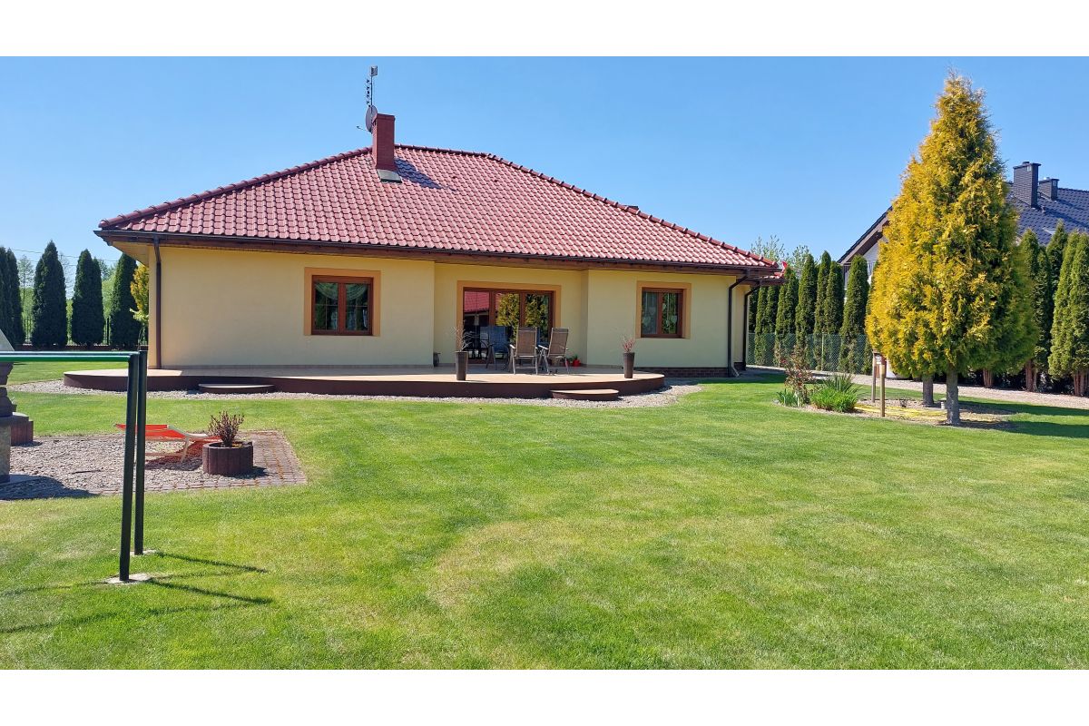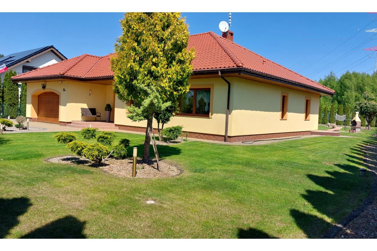 Dom dla wymagających - nowoczesne i oryginalne wnętrza, z salonu wyjście na duży taras (52 m2) z widokiem na las, boisko do siatkówki i koszykówki wyłożone kostką brukową, 2 systemy ogrzewania: pompa ciepła i ogrzewanie kominkowe z dystrybucją ciepłego powietrza na wszystkie pomieszczenia domu, klimatyzacja, przydomowa oczyszczalnia ścieków, woda miejska + własna woda do podlewania ogrodu, automatyczny system nawadniający, monitoring zewnętrzny z podłączeniem do Internetu, zdalnie sterowany system alarmowy z GPRS,  automatyczne bramy, niemiecka dachówka ceramiczna Koramic, okna pcv w pakiecie trzyszybowym, rolety zewnętrzne, niemieckie drzwi wejściowe firmy OBST z ciepłego aluminium z wypukłym antywłamaniowym szkłem, gięta lakierowana kuchnia z systemem TIP-ON, w jadalni stół bilardowy z nakładkami tworzącymi stół biesiadny. Inteligentny dom.